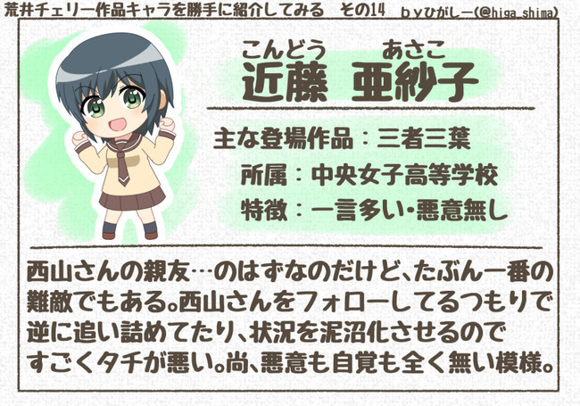 荒井チェリー作品キャラを勝手に紹介してみる 014 近藤 亜紗子 ひがしー ニコニコ漫画